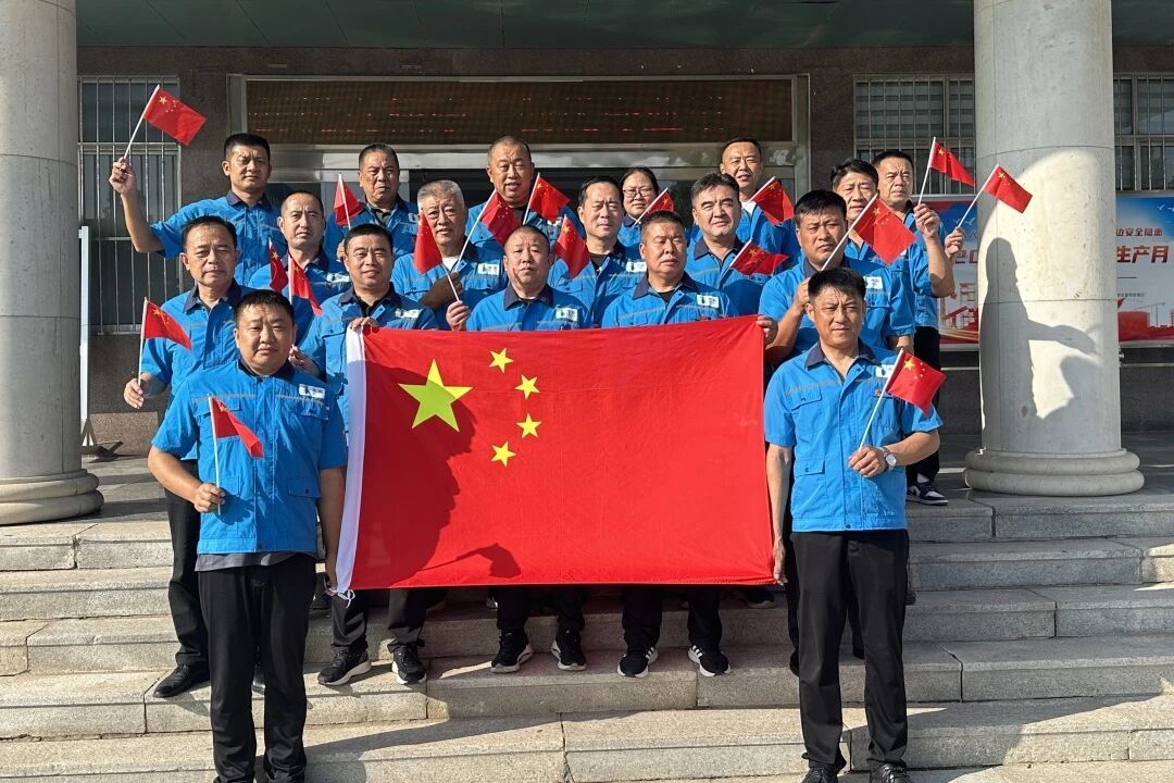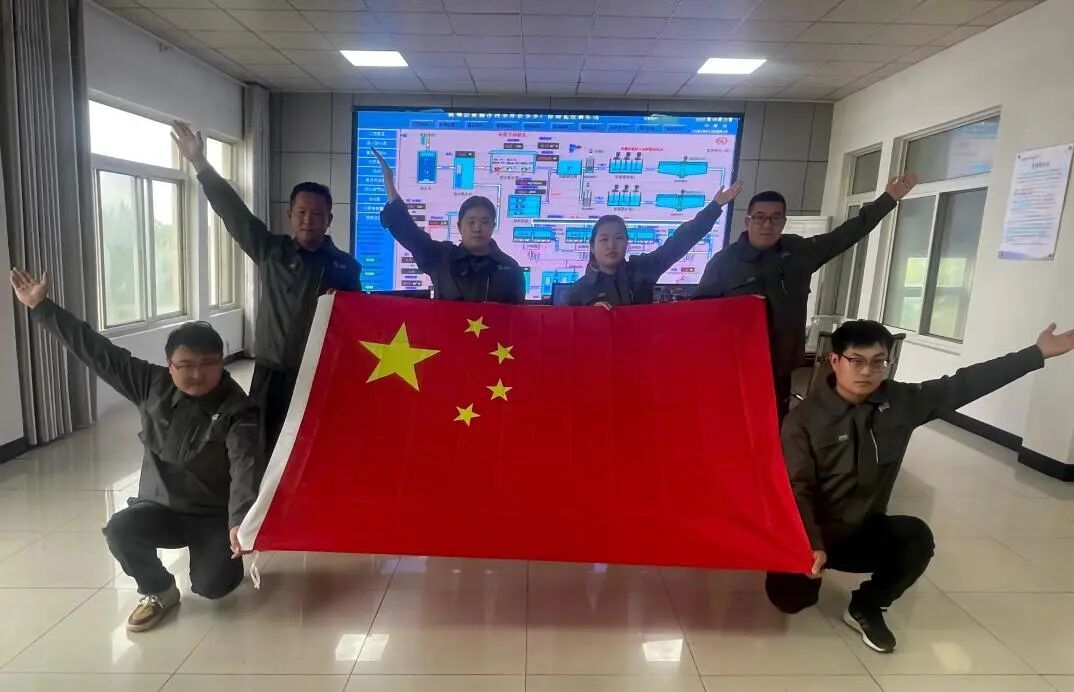值此國慶佳節之際,平陰水務發展有限公司全體員工身著工裝,手持國旗,以匠心致祖國,在生產一線書寫對祖國的熱愛與擔當。